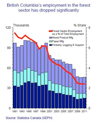Drop in Employment in BC’s Forestry Sector