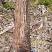 Port Renfrew, Vancouver Island, 2014 – “Big Lonely Doug,” a recently found old-growth Douglas-fir tree standing alone in a clearcut on southern Vancouver Island, has been officially measured to be the second largest Douglas-fir tree in Canada. Last week, renowned forest ecologist Andy MacKinnon, who manages the BC Big Tree Registry run by the University of British Columbia and is also the co-author of the best-selling “Plants of Coastal British Columbia, Washington, and Oregon,” measured the goliath tree.