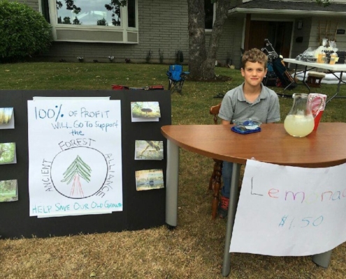 Thank you to 9 year old Gavin Wright, who collected donations at his lemonaide stand for the Ancient Forest Alliance! He showed up to present his batch of donations to us after the film screening of Hadwin's Judgement. We're most grateful to Gavin for his initiative to help our organization and campaigns!