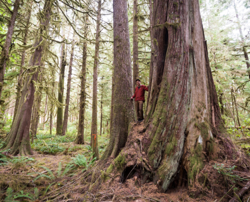There are no trails in the old-growth coastal temperate rainforests of Canada’s southern Vancouver Island. As I follow TJ Watt through another grabby thicket of stink currant, I offer silent thanks that I’m not the one lugging the camera equipment.