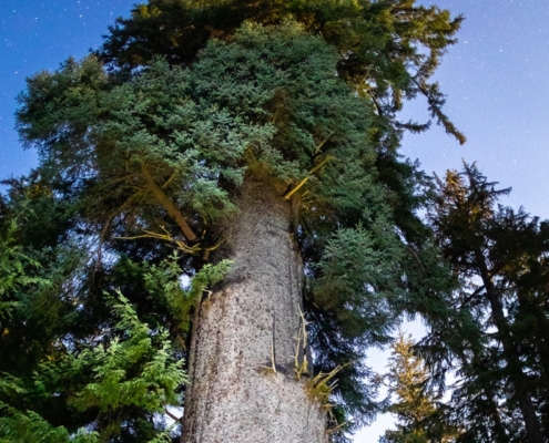 A strikingly beautiful image of the magnificent San Josef Spruce, aka "San Jo's Smiley," the largest spruce tree in Canada.