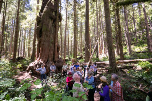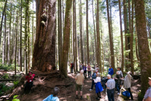 Last week, the BC KAIROS Rolling Justice Bus embarked on four day tour to see some of Vancouver Island’s most spectacular ancient forests and learn more about the issues surrounding them. AFA’s TJ Watt and forest ecologist Andy MacKinnon helped kick off day one of the tour at Avatar Grove in Canada’s Tall Trees Capital, Port Renfrew, sharing what makes old-growth forests so unique and why they’re worth more standing than as stumps! Thanks to BC-KAIROS for hosting this informative tour, raising awareness for BC’s ancient forests, and having the AFA along!