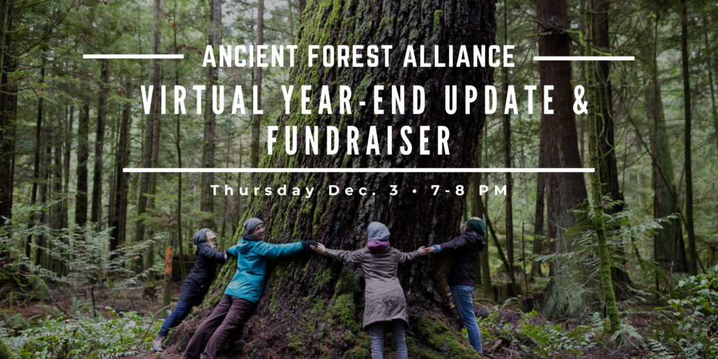 We’re hosting our annual year-end event and fundraiser on Thursday, December 3rd, from 7-8 pm - this time on Zoom! Join us to learn what we've been up to this past year and what's next for BC's old-growth forests. Plus, you could win some fun prizes!