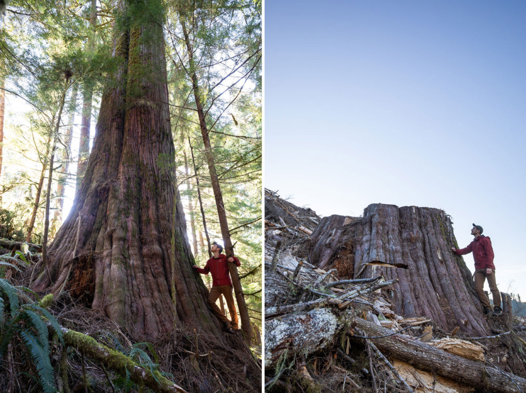 Shocking before-and-after photos reveal destruction of irreplaceable ancient redcedars in Vancouver Island’s Caycuse watershed and highlight urgent need for immediate protection of at-risk old-growth and funding to support First Nations’ protected areas and economies.