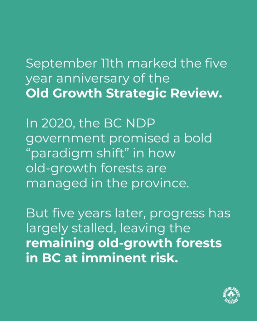 Sep 16 2025Infographic: 5 years after the Old Growth Strategic Review, the BC Government stalls progress and starts to backslide.