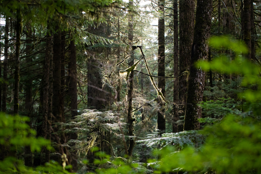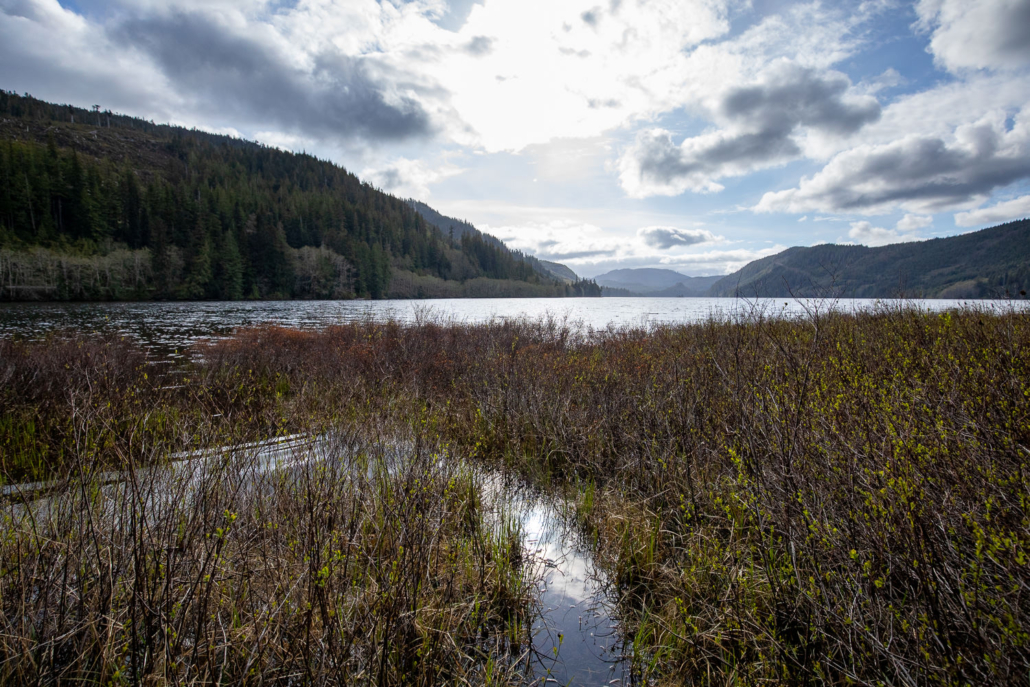 On the shores of Nahwitti Lake between the towns of Holberg and Port Hardy in Tlatlasikwala & Quatsino Territory stands one of the loveliest little old-growth trails on Vancouver Island. This gentle path winds through a lush old-growth forest and features massive Sitka spruce trees that soar majestically from enchanting fields of ferns before ending at the shores of the lake. In a landscape that’s been almost entirely cleared of its ancient giants, it provides a stunning glimpse into the grand forests that once grew here.