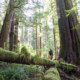 TJ Watt stands beside a giant redcedar in Jurassic Grove on a foggy day. Photos: Jurassic Grove in the Fog