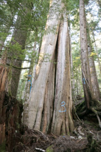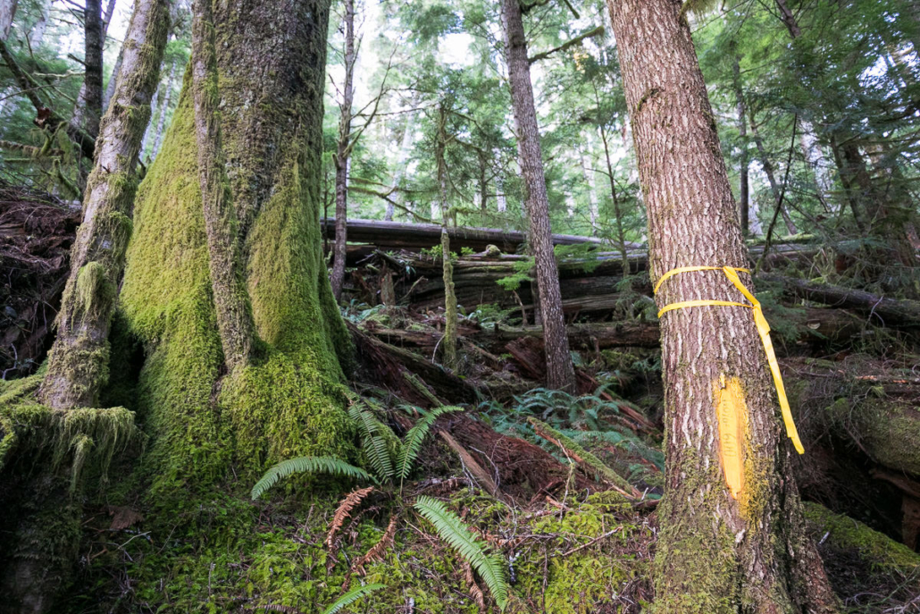 Just 50 meters away from the active cutblock stands a Douglas-fir tree that is the 6th widest Douglas-fir tree on record, according to the BC Big Tree Registry, and the 7th widest when including the Alberni Giant in the Nahmint Valley. While the near record-sized tree is located within a Wildlife Habitat Area, it remains vulnerable to future logging.