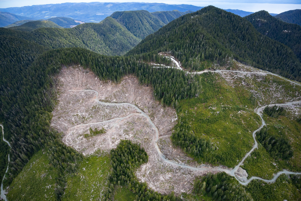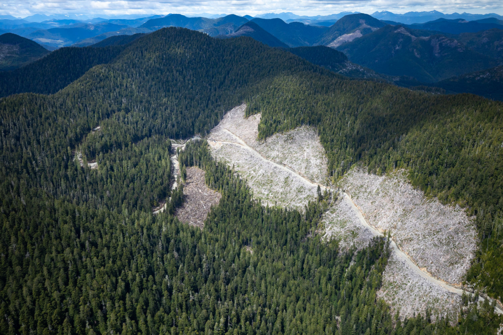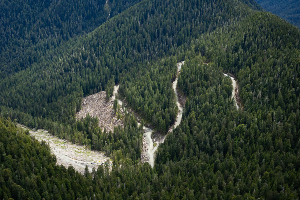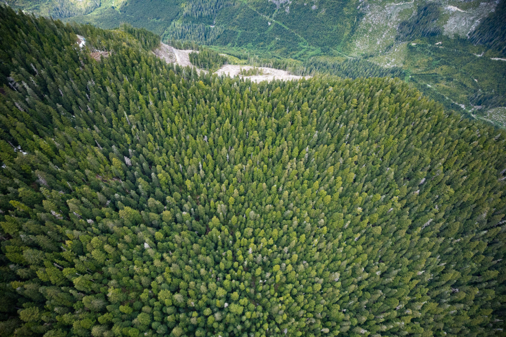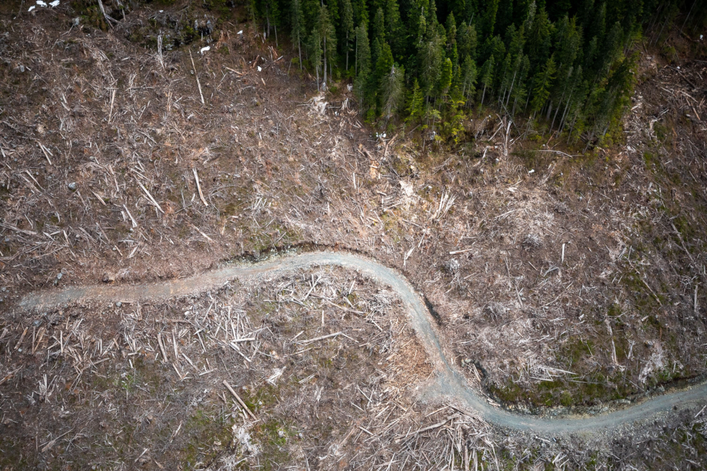The emerald-green ancient forests of the Fairy Creek Valley in Pacheedaht territory from above. Last week we took to the skies to document old-growth forests and logging across the west coast of Vancouver Island and, when you’re in the air, it’s clear just how incredibly rare a sight this is – a roadless valley free from clearcuts. But how long will it remain that way?