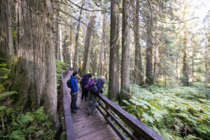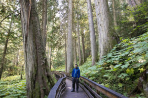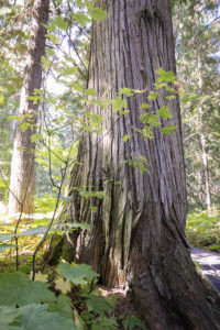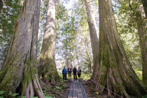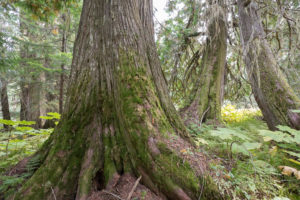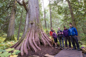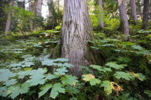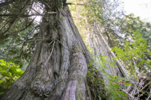 This amazing rainforest of old-growth redcedars in the Upper Fraser Valley off Highway 16 was protected through a stellar, broad-based campaign led by a collaborative effort of the Caledonia Ramblers Hiking Society, scientists at the University of Northern BC, and local environmental activists with the Dome Creek Forest Information Committee, with the support of the Lheidli T’enneh First Nation. Their campaign was smart and wise — they sought to enlist the support of a wide cross-section of people and organizations, including businesses and the local Rotary Club, far beyond the echo chamber base of already dedicated environmental activists who normally support such efforts. The result was the protection of several of the finest stands of Inland Temperate Rainforest on Earth! Of particular note was the high-quality boardwalk they built to protect the understory and tree roots and to enhance public access to this special old-growth forest.