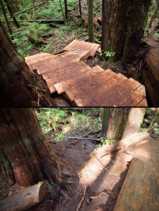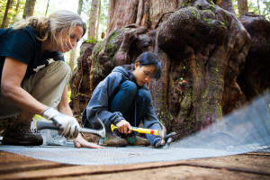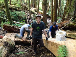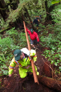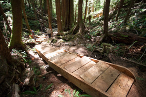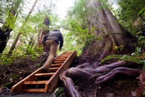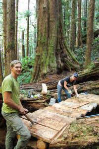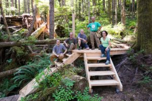 From 2013-2018, Ancient Forest Alliance’s TJ Watt led the construction of many boardwalk and trail sections in Avatar Grove with the help of dozens of incredible volunteers. This trail work was to help protect the area’s ecological integrity and increase visitor safety, ultimately fostering greater public awareness of the need to safeguard old-growth forests in BC as people came from far and wide to see the spectacular forest. We’re very grateful for the financial support of our donors and the various grants which have made this project possible!