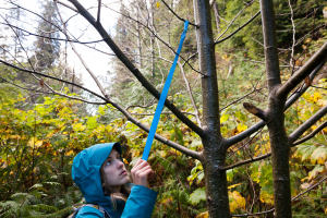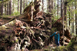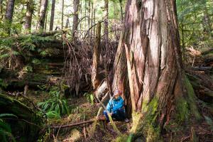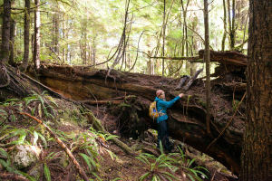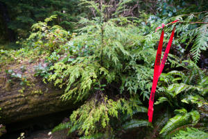 In November 2014, survey tape marked “falling boundary” and “road location” was discovered by hikers in the unprotected portion of the Walbran Valley, one of the most iconic and grandest old-growth temperate rainforests in Canada. Members of the Ancient Forest Alliance went to investigate and confirmed the potential logging threat.