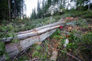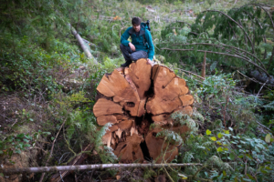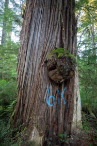“This was a superlative ancient forest,” stated AFA photographer and campaigner, TJ Watt. “I was floored by the sheer number of monumental redcedars cut down. It was the most shocking example of industrial old-growth logging I’ve witnessed since the logging in the Caycuse and Nahmint Valleys. Dozens of centuries-old trees littered the ground, trees that were taller on their side than I was standing beside them. Some of them were alive earlier that day. After more than a century of high-grade logging in BC, groves of unprotected giants like these are extremely rare to find. To lose another one as special as this is heartbreaking.”