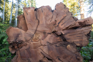 Ancient Forest Alliance (AFA) members TJ Watt and Ian Thomas came across the fallen remains of a grove of enormous western redcedars — some measuring upwards of 10 feet (3 meters) wide — on a field expedition in 2022. The 25-hectare old-growth cutblock is located on public lands in Tree Farm Licence 6, which is held by logging company Western Forest Products, in Quatsino territory.