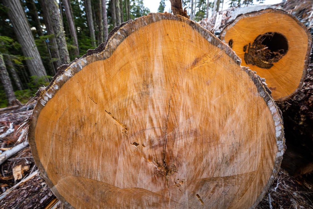 Located outside the town of Powell River in the territory of the Tla’amin and shíshálh First Nations, Mt. Freda is home to some of the oldest trees in Canada. High in the mountains, locked in by snow for much of the year, these forests are incredibly slow-growing and delicate ecosystems. Some ancient yellow cedars logged on Mt. Freda were found to be over 1200 years old. This 21-hectare cutblock, located at over 3,609 feet (1,100 metres), is powerful evidence of the extreme lengths that logging companies are going to carve out the last vestiges of old-growth from the landscape.