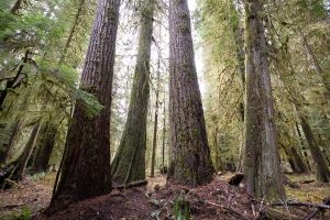 Located on the banks of the White River, near the town of Sayward, in the territory of the K’omoks, We Wai Kai, and Wei Wai Kum First Nations, this incredible forest is dominated by towering Douglas-firs, including one that soars to 87 metres (285 feet) tall! Large western redcedars are also present.
