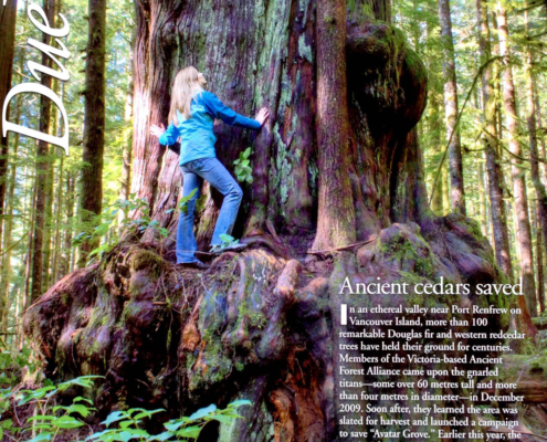In an ethereal valley near Port Renfrew on Vancouver Island, more than 100 remarkable Douglas-fir and red cedar trees have held their ground for centuries. Members of the Victoria-based Ancient Forest Alliance came upon the gnarled titans - some over 60 metres tall and more than four metres in diameter - in December 2009. Soon after, they learned the area was slated for harvest and launched a campaign to save "Avatar Grove."