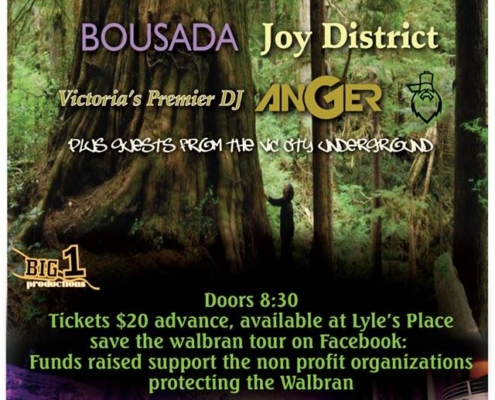 Have fun while supporting the protection of the endangered Walbran Valley this Friday, May 27th at the White Eagle Hall in James Bay as part of the Save the Walbran Tour! There will be great local musicians as well as information booths to learn more about how you can help out! Tickets $20 at Lyle's Place. The tour is being hosted by local organizers in conjunction with several non-profits and community initiatives. For more info see:. https://www.facebook.com/events/1102443283130908/