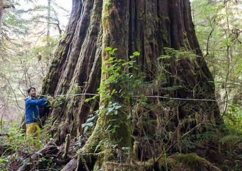 "Conservationists who want the government to take action on climate change by protecting B.C.'s old-growth forests say they've measured a near-record-size red cedar in Vancouver Island's central Walbran Valley.