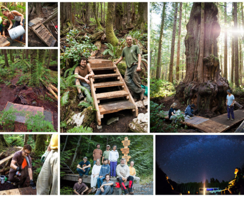 The Ancient Forest Alliance has nearly completed the preliminary phase of boardwalk construction at the Avatar Grove in essential areas such as the steep and slippery slopes, the roots around the biggest trees, and over creeks and other obstacles. More upgrades can still be done in the future but the toughest parts are almost compete. A big thanks goes out to our volunteers and donors! Fundraising for the boardwalk project will continue as we still have more work to complete in the new year.