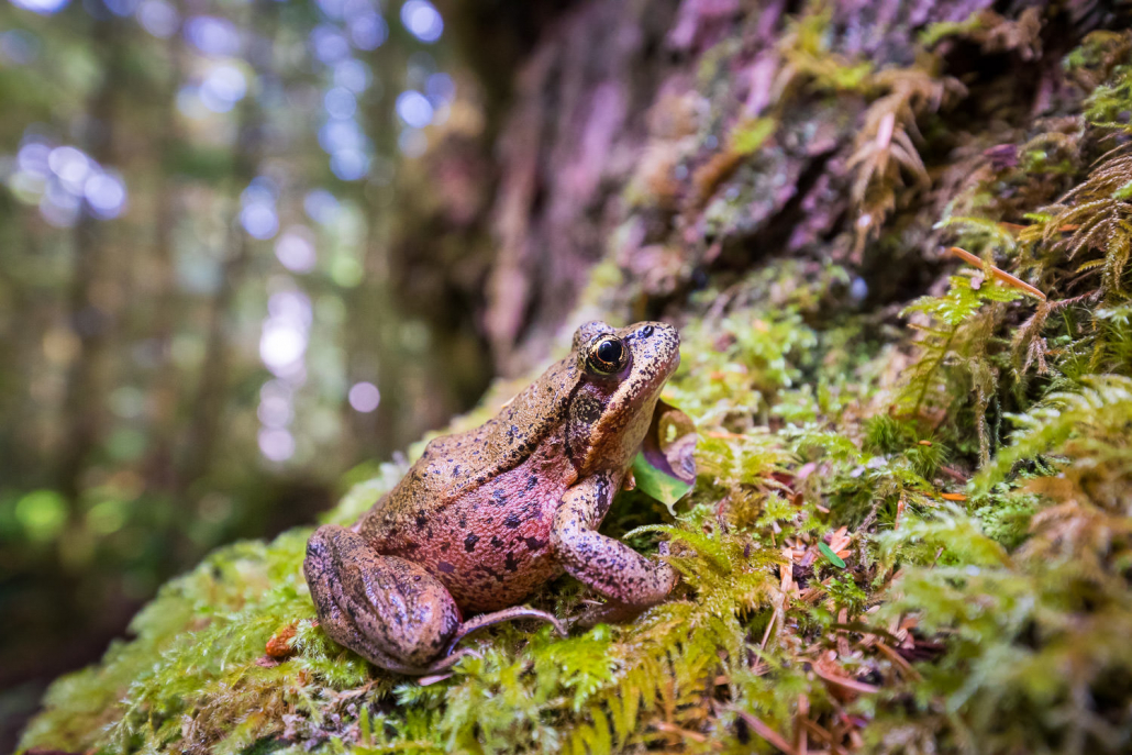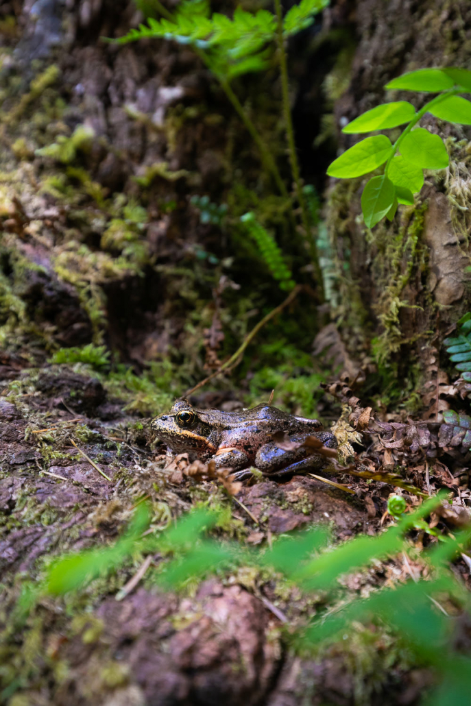 This frog is a blue-listed species of special concern in BC and requires undisturbed forested streams and wetlands in which to survive. Red-legged frogs are especially dependent on cool, shaded waters to breed, making the cool microclimate of old-growth forests an ideal habitat for them.