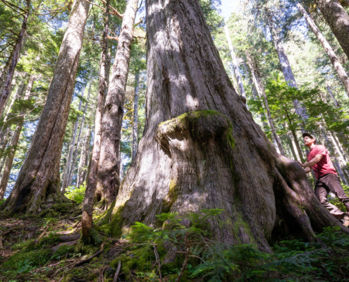 ‘Before’ images have been recently captured in an active Western Forest Products cutblock in the far upper reaches of the Walbran Valley in Pacheedaht territory. Scores of giant cedars are banded…