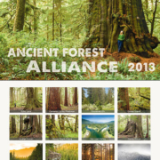 The AFA’s new 2013 calendars highlight some of the special places on BC’s coast that we’ve explored as we work towards securing provincial legislation to save our endangered old-growth forests and forestry jobs. The calendar features the Avatar Grove, the Walbran’s Castle Grove, Echo Lake, Flores Island in Clayoquot Sound, Mossy Maple Grove/ Fangorn Forest, the Cameron Valley Firebreak, San Juan Valley, Cortes Island, Cathedral Grove Canyon, the Gordon River Valley, and more! It is also printed on 100% post-consumer recycled paper with vegetable based inks.