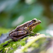 The red-legged frog is a beautiful and secretive inhabitant of the coastal rainforest. These small frogs are found in shaded forest pools and can be recognized by the bright red colouring on their legs.
